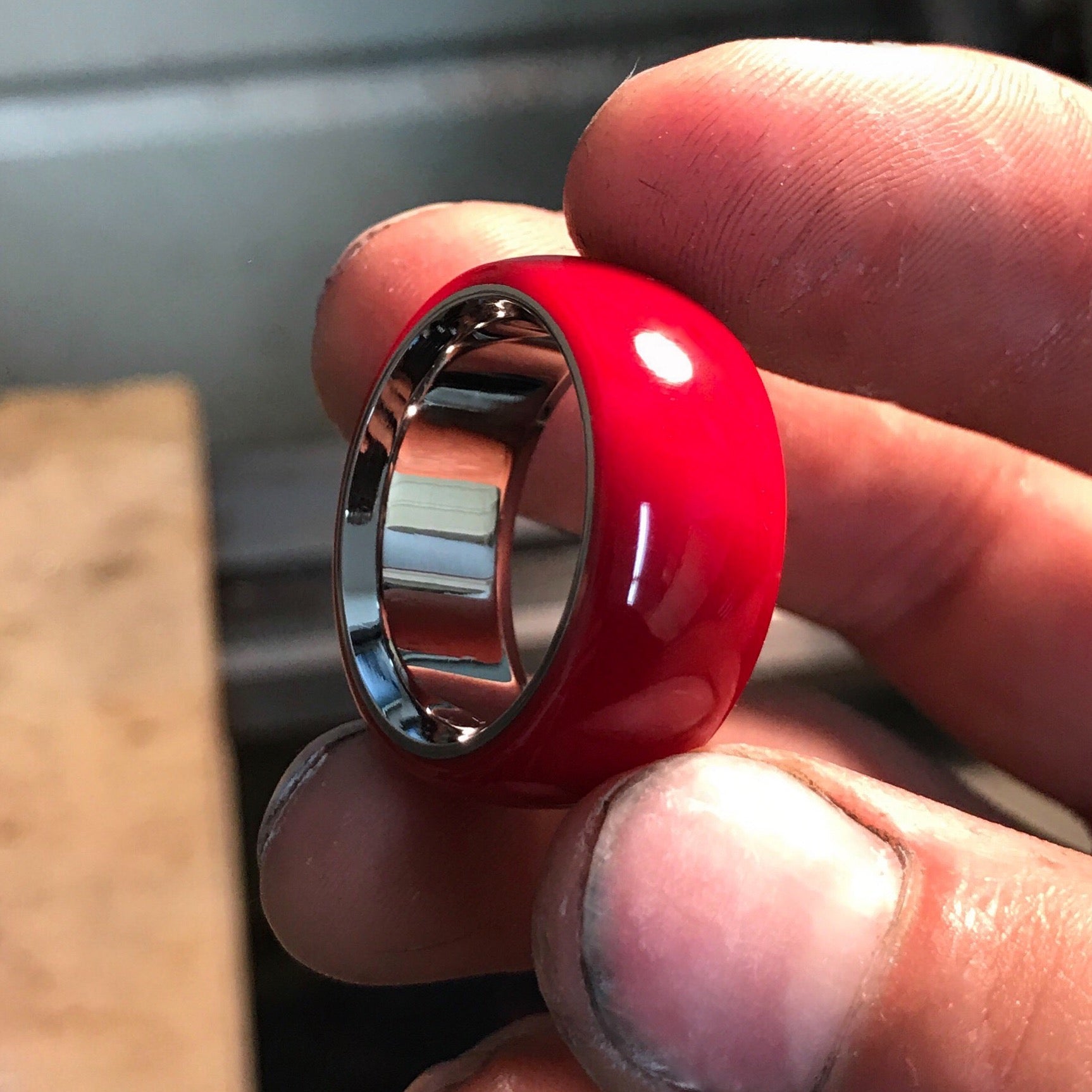 Sweet, bold, and vibrant, FingerCandy's are designed for those who love to stand out. With its glossy, rich cherry-red finish, this ring delivers an eye-catching pop of color. Encased in a sleek, polished stainless band, the ring's smooth, rounded shape offers a modern, comfortable fit that's perfect for both casual and chic looks.